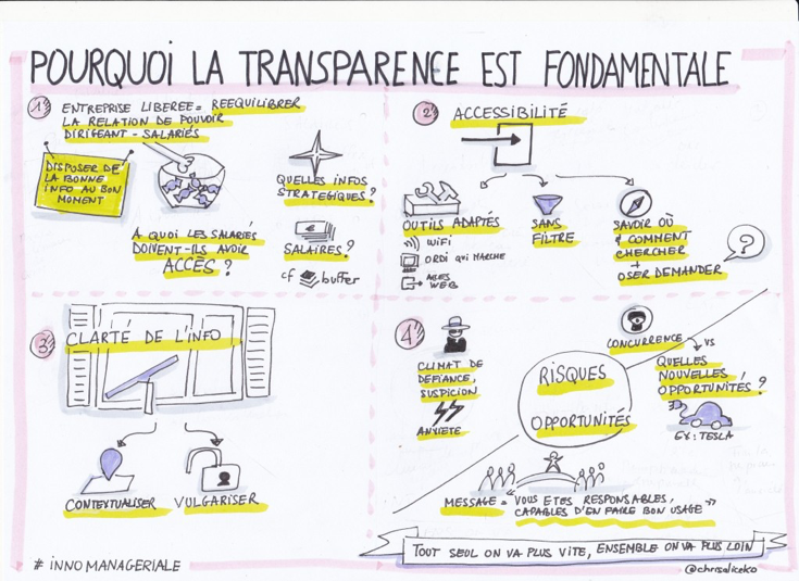 La transparence en entreprise, c’est la pratique sociale guidée par la sincérité et une parfaite accessibilité de l'information. C'est aussi le souci de rendre compte d'une activité, de reconnaître ses erreurs. Elle doit se jouer à plusieurs niveaux :